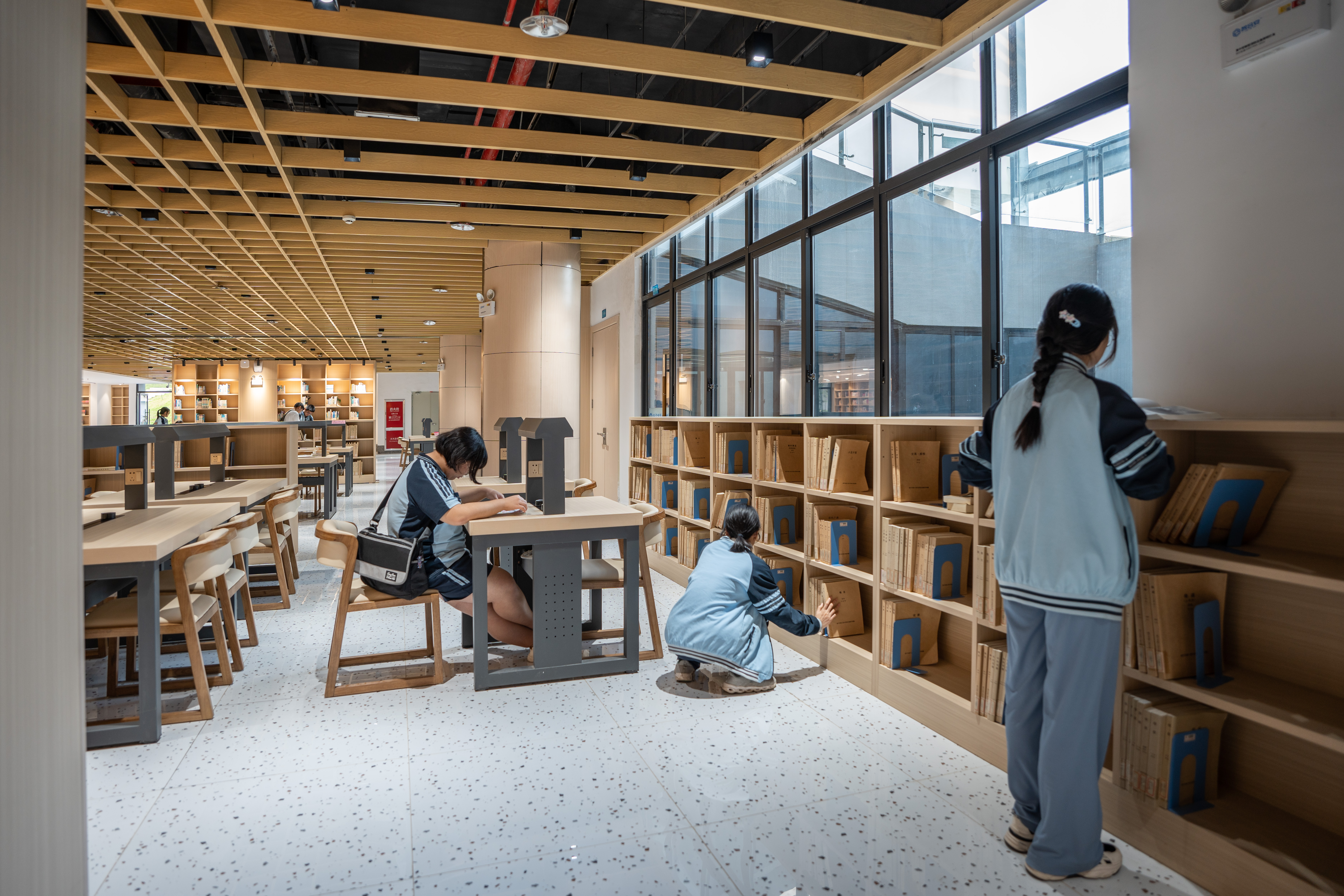 学校图书馆已实现全智能化管理,一体式服务,提供办证、借书、还书、盘点在内的全套智能化图书管理服务,全自助方式能快速完成学生各项服务需求,简单易用,给学生进入书海提供最大便利,也实现了图书馆管理工作由传统人工向全智能化运作的快速转变。