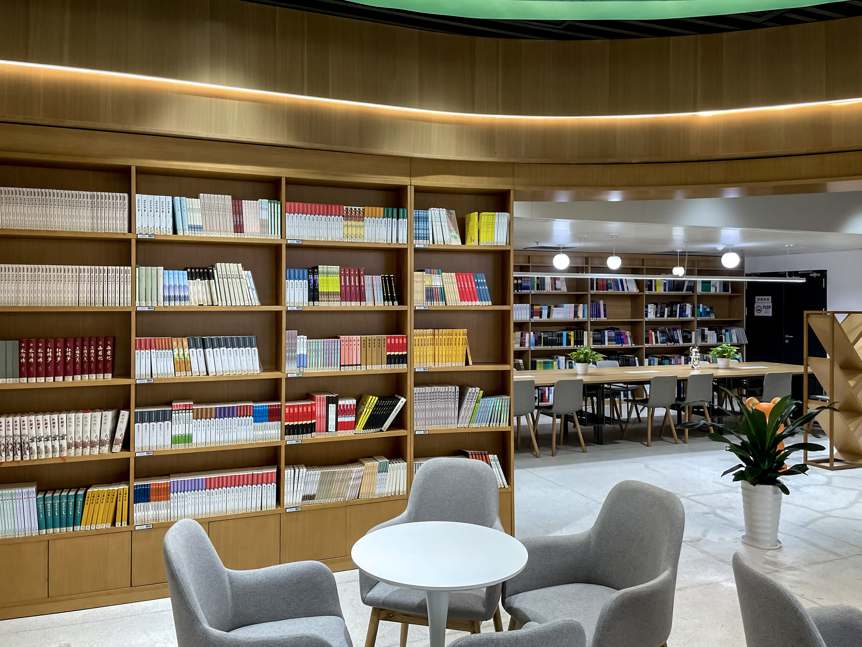 玉律学校建设中/小学两馆,藏书量 80000+ ,馆藏丰富,涵盖多个学科领域;学校重视书香校园建设,安排每周⼀节阅读课,⽇均借阅量可达 240册,除了学生阅览室,还配备教师书吧,满足全校师生广泛的借阅需求,图书馆初步完成智能化建设,通过⾃助借还机、⼈脸识别等智能借阅设备,借阅体验升级。